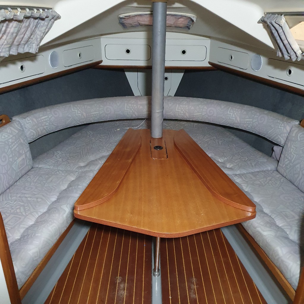 De Dehler 28 Top is een zeer populaire en veelzijdige zeilboot, ontworpen door V.d. Stadt en gebouwd door de gerenommeerde Duitse jachtwerf Dehler. Deze Dehler 28 Top uit 1987 is goed onderhouden en in uitstekende staat. Met zijn lengte van 8,5 meter en zijn lichtgewicht constructie is deze boot zeer wendbaar en gemakkelijk te zeilen. Deze Dehler 28 Top is uitgerust met een grootzeil, een fok en een genaker, waardoor hij geschikt is voor verschillende zeilomstandigheden. De boot heeft een diepgang van 1,35 meter en een kielgewicht van 1.100 kg, waardoor hij stabiel en zeewaardig is. Het interieur van deze Dehler 28 Top is ruim en comfortabel. De boot biedt plaats aan maximaal vier personen en heeft een keukentje, een toiletruimte en voldoende opbergruimte voor kleding en andere spullen. Daarnaast biedt de Dehler 28 Top slaapplaatsen voor vier personen. Deze Dehler 28 Top uit 1987 is klaar om te zeilen en biedt veel waar voor zijn geld. Of u nu wilt zeilen op binnenwateren of op zee, deze boot zal u niet teleurstellen. Neem contact met ons op voor meer informatie of om een bezichtiging te plannen. De Dehler 28 Top is een van de meest populaire modellen van de Dehler werf en is gebouwd met hoogwaardige materialen en vakmanschap. Met deze Dehler 28 Top uit 1987 heeft u een boot van Duitse makelij die bekend staat om zijn betrouwbaarheid, kwaliteit en prestaties.